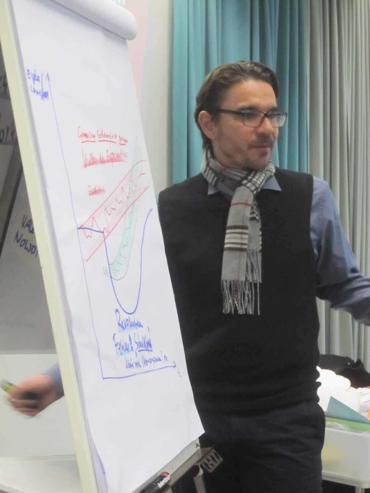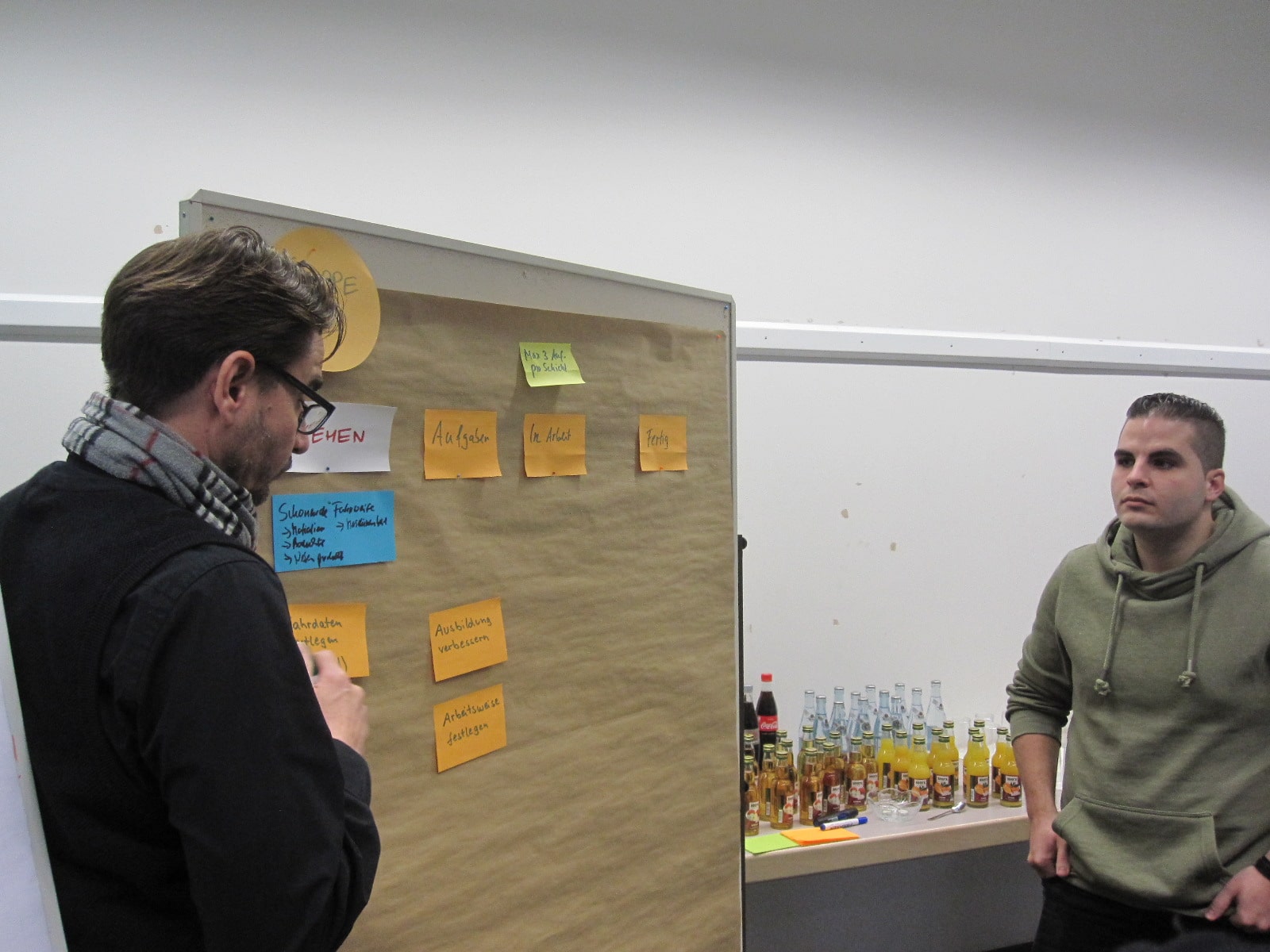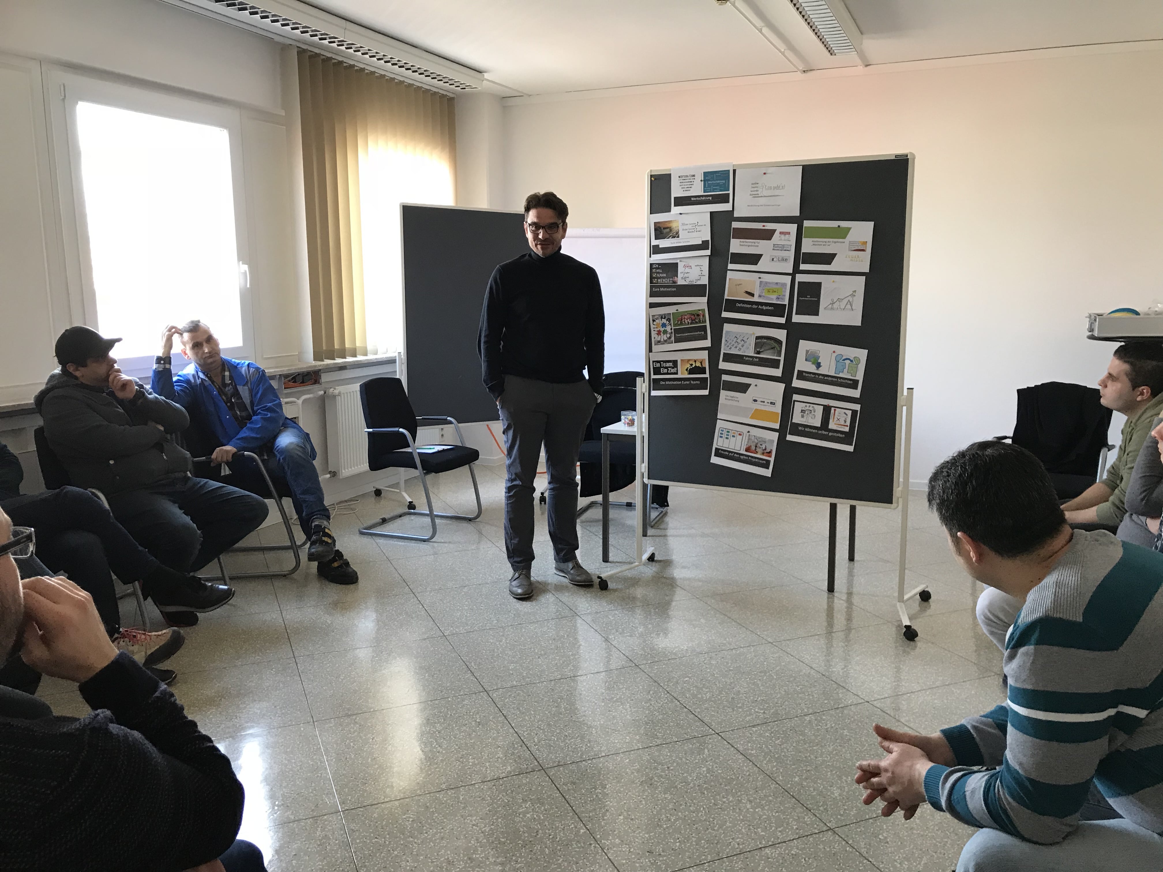 Dabei haben wir die Erfahrung gemacht, dass die Zeiten von Powerpoint für Trainings und Workshops sich immer mehr dem Ende neigt. Der Transfer von Inhalten auf Flip-Charts oder Pinnwänden ist lebendiger und integriert die Lernenden viel mehr in den Lernprozess.