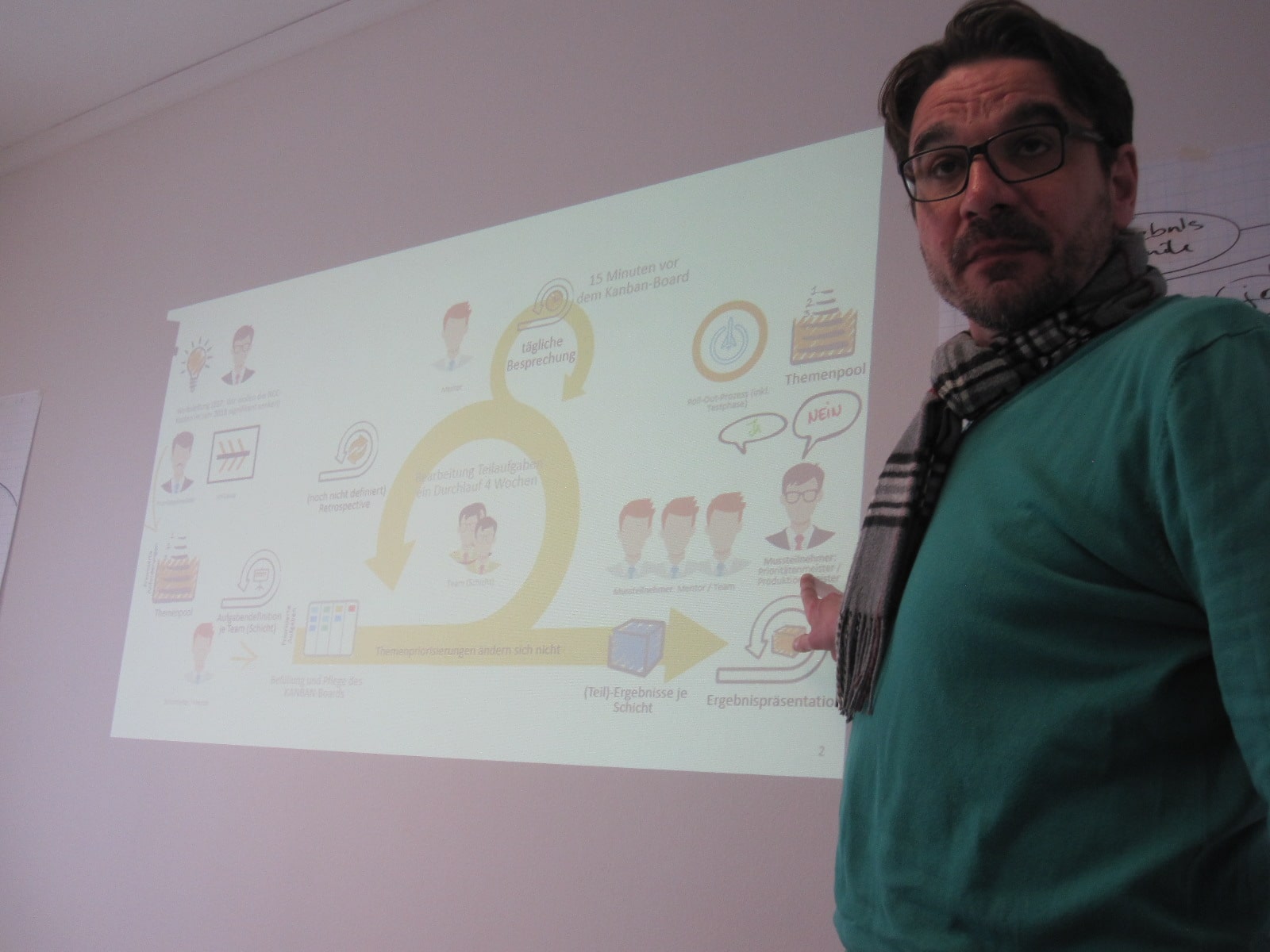 “Folien sind hinterher gut zu verwenden, Hinweise auf für Rahmenbedingungen notwendig sind, um agil zu arbeiten.”